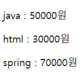 <p><%= book.getTitle() %> : <%= book.getPrice() %>원 </p>
