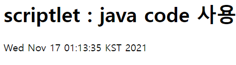 스크립트릿 : jsp 페이지에서, 자바 코드 실행하려고 할 때, 사용되는 블록
