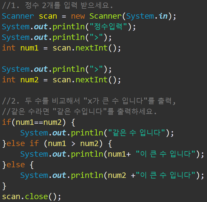 //2. 두 수를 비교해서 "x가 큰 수 입니다"를 출력,