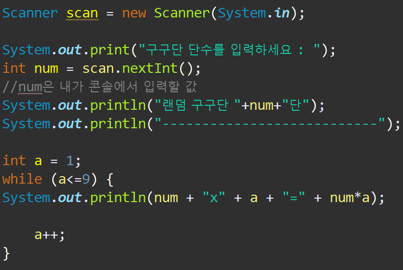 만약 정수 10을 입력했을 때, 10x1=10부터 시작해서 10x9=90이 출력되었다면 정답~
