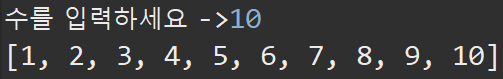 //배열에 1~입력 받은 수 까지 차례대로 값을 넣으세요.