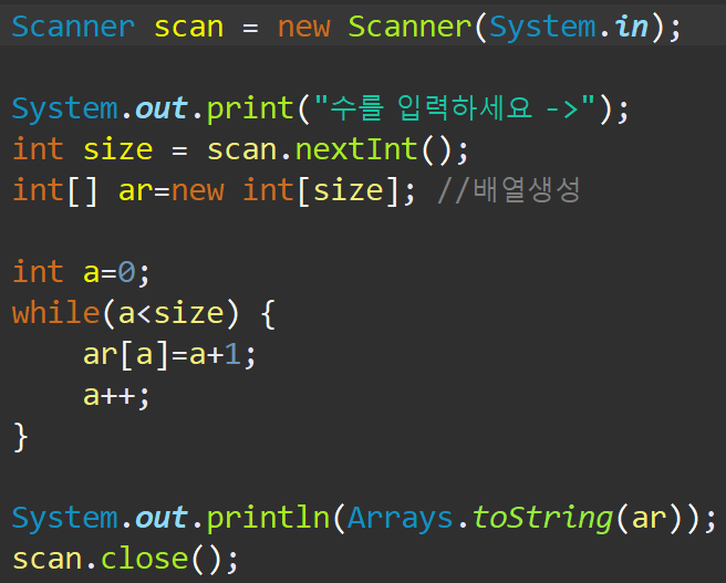 int[] ar=new int[size]; //배열생성