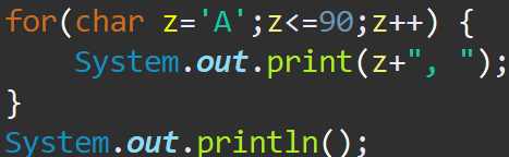 for(char z='A';z<=90;z++) {