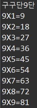 //System.out.printf("%dX%d=%d \n",dan,i,dan*i);