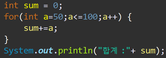 System.out.println("합계 :"+ sum);
