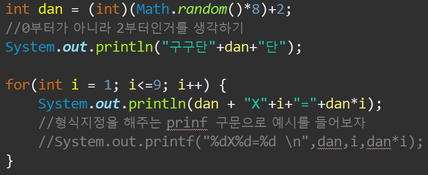 System.out.println("구구단"+dan+"단");